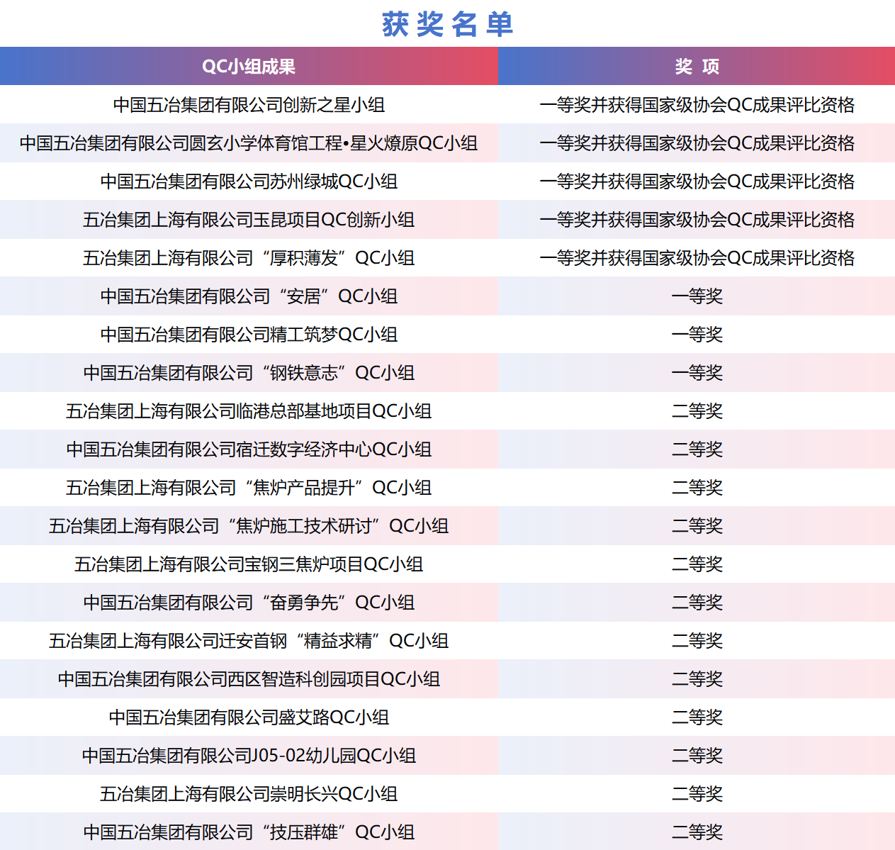 载誉前行|公司8项QC成果获全国冶金建设行业QC成果一等奖